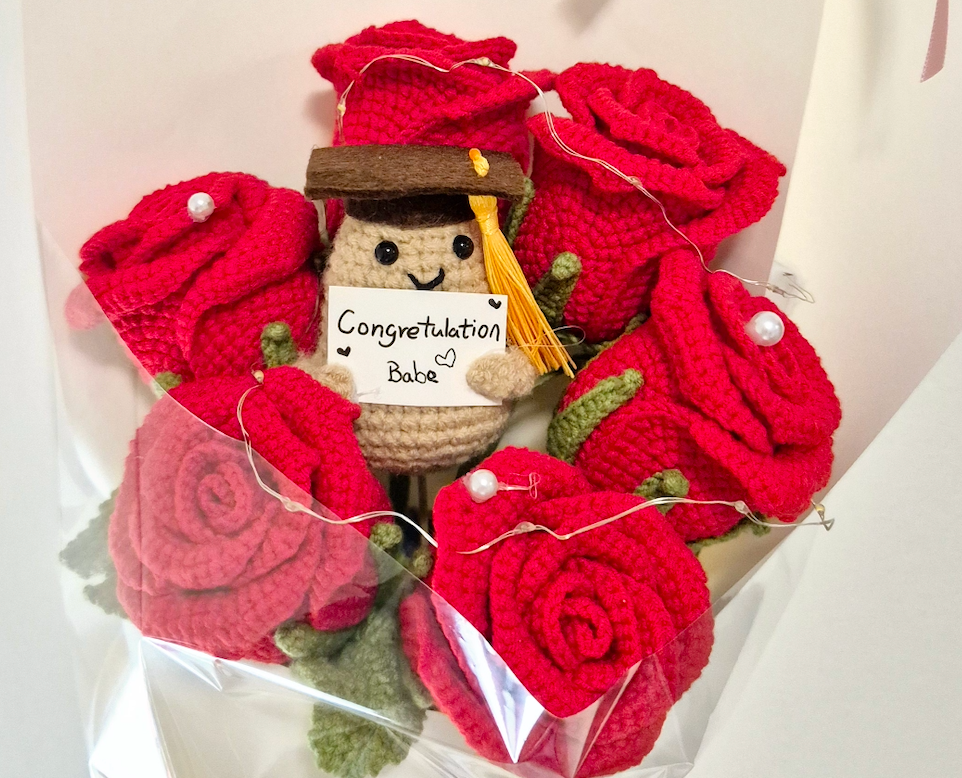 Meet our Graduation Smiling Potato—your crochet flowers’ new best friend. Dressed to impress in a tiny cap and gown, whether it’s for a graduation, a promotion, or just a “you did it!” moment, he’s guaranteed to bring smiles.