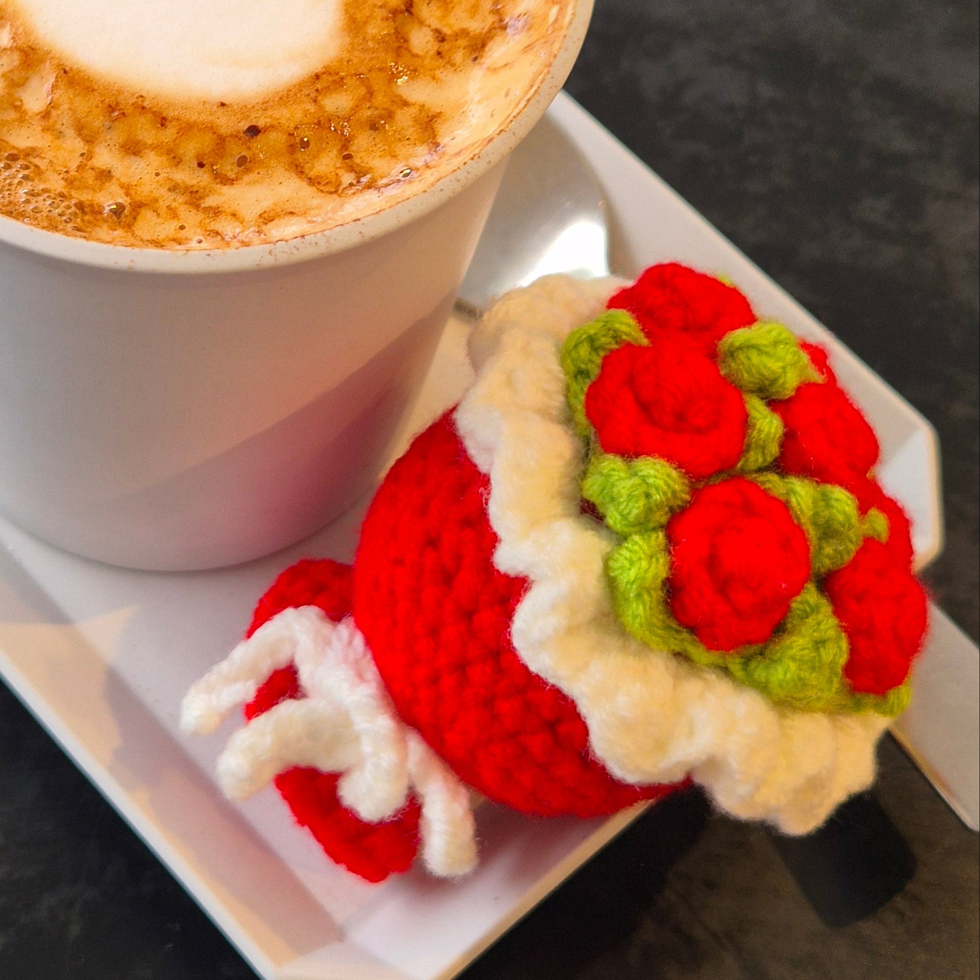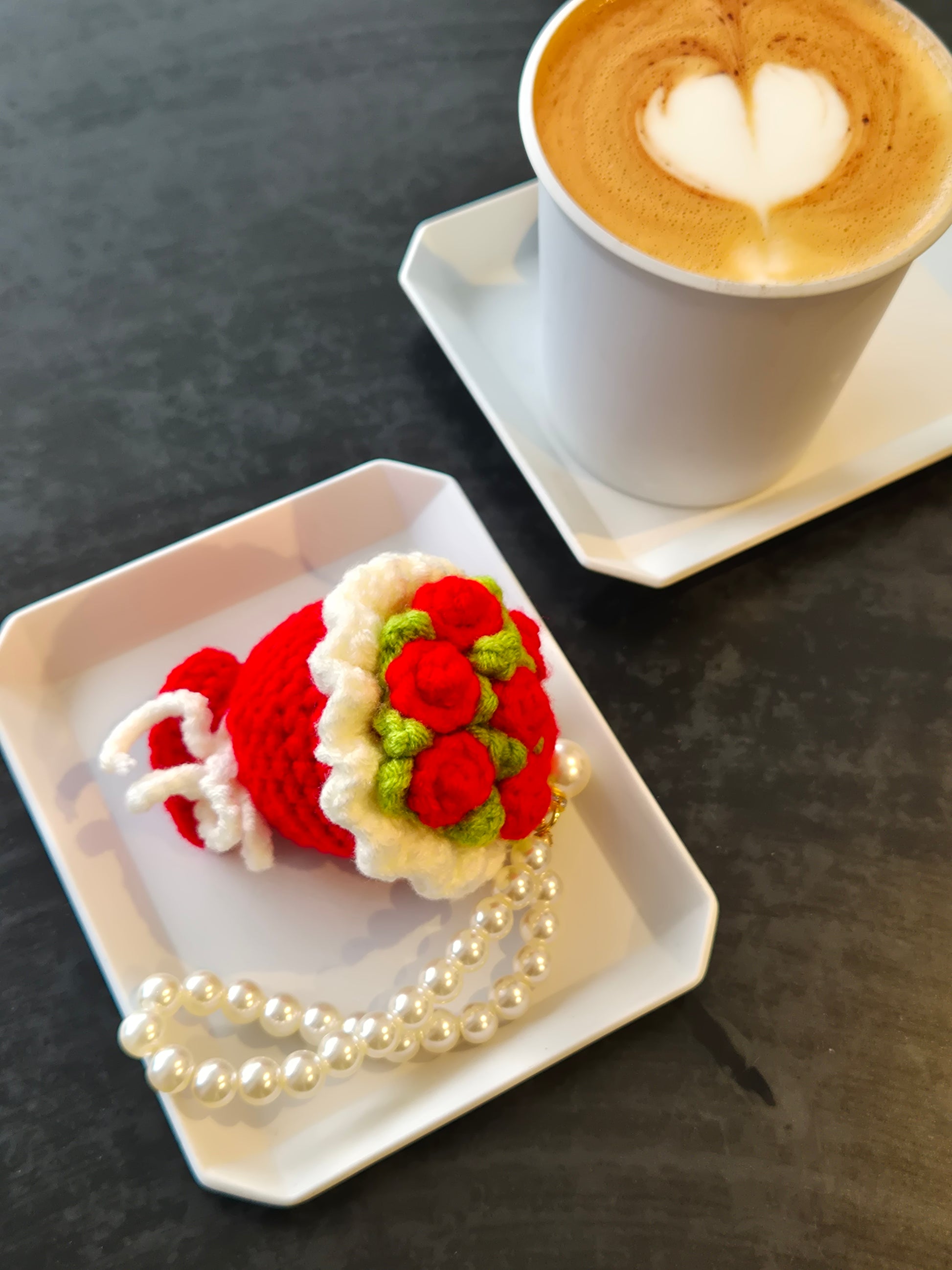 Bold, timeless, and romantic—this mini red rose bouquet is handcrafted with rich cotton yarn, featuring classic red roses nestled in soft green leaves. Each bouquet is palm-sized and filled with plush stuffing, wrapped in a charming base with a delicate ruffle edge to complete the look.